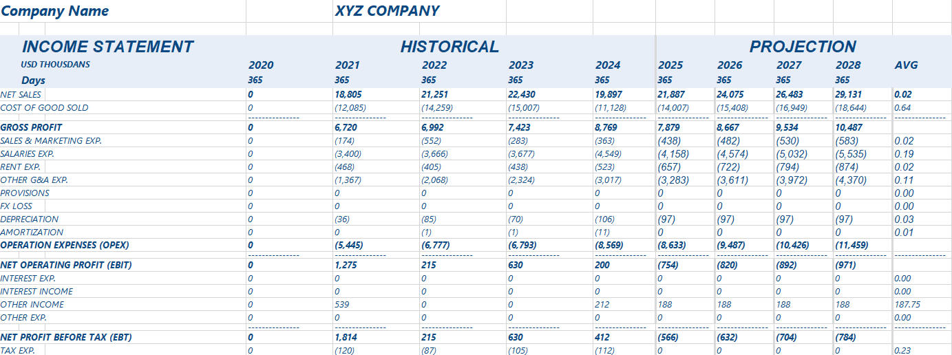 قوائم مالية كاملة: قائمة الدخل – المركز المالي – التدفقات النقدية (5 سنوات تاريخية و 4 سنوات تقديرية)